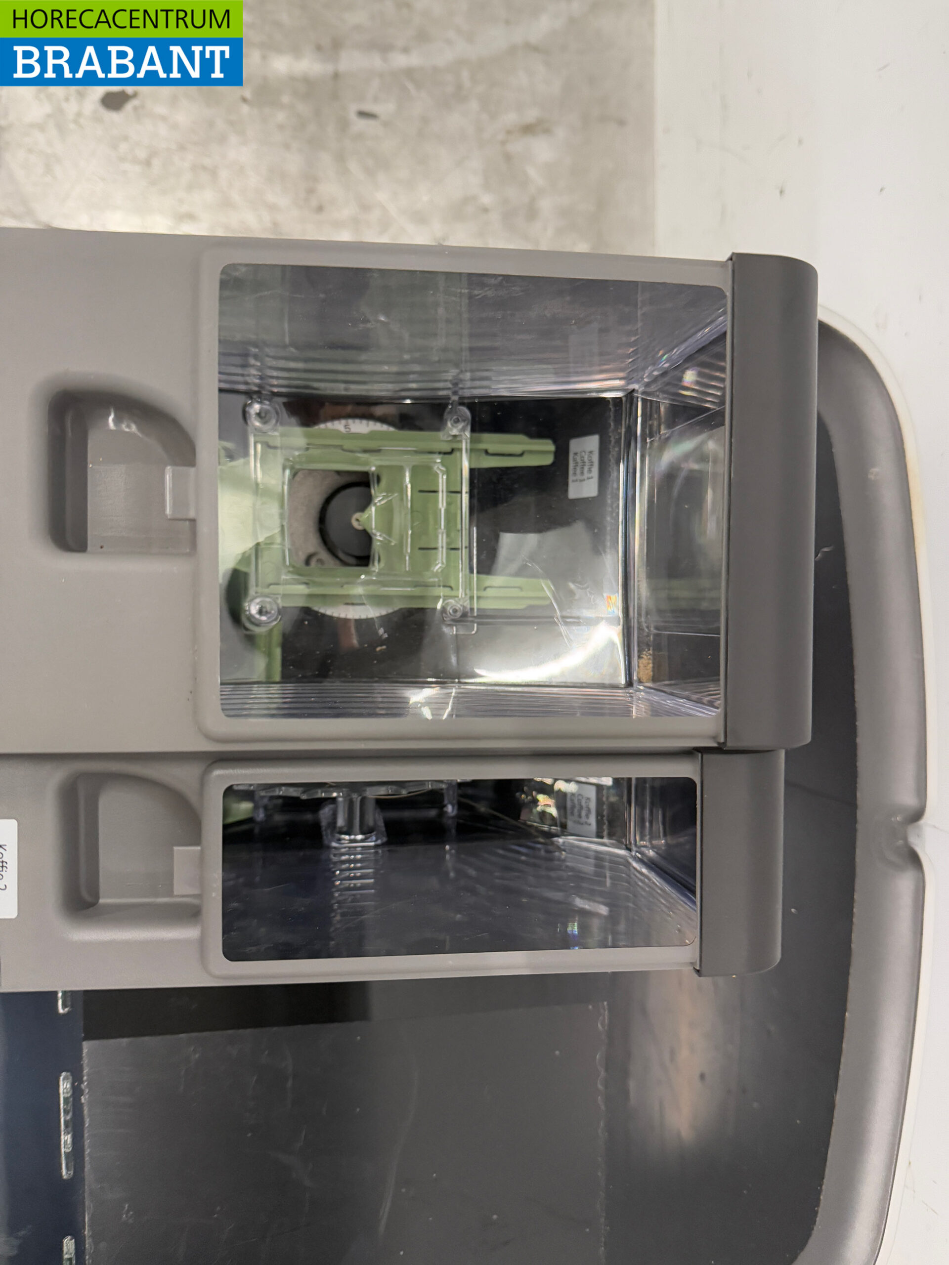 2x Containers, 1 voor verse bonen en 1 voor poederkoffie.