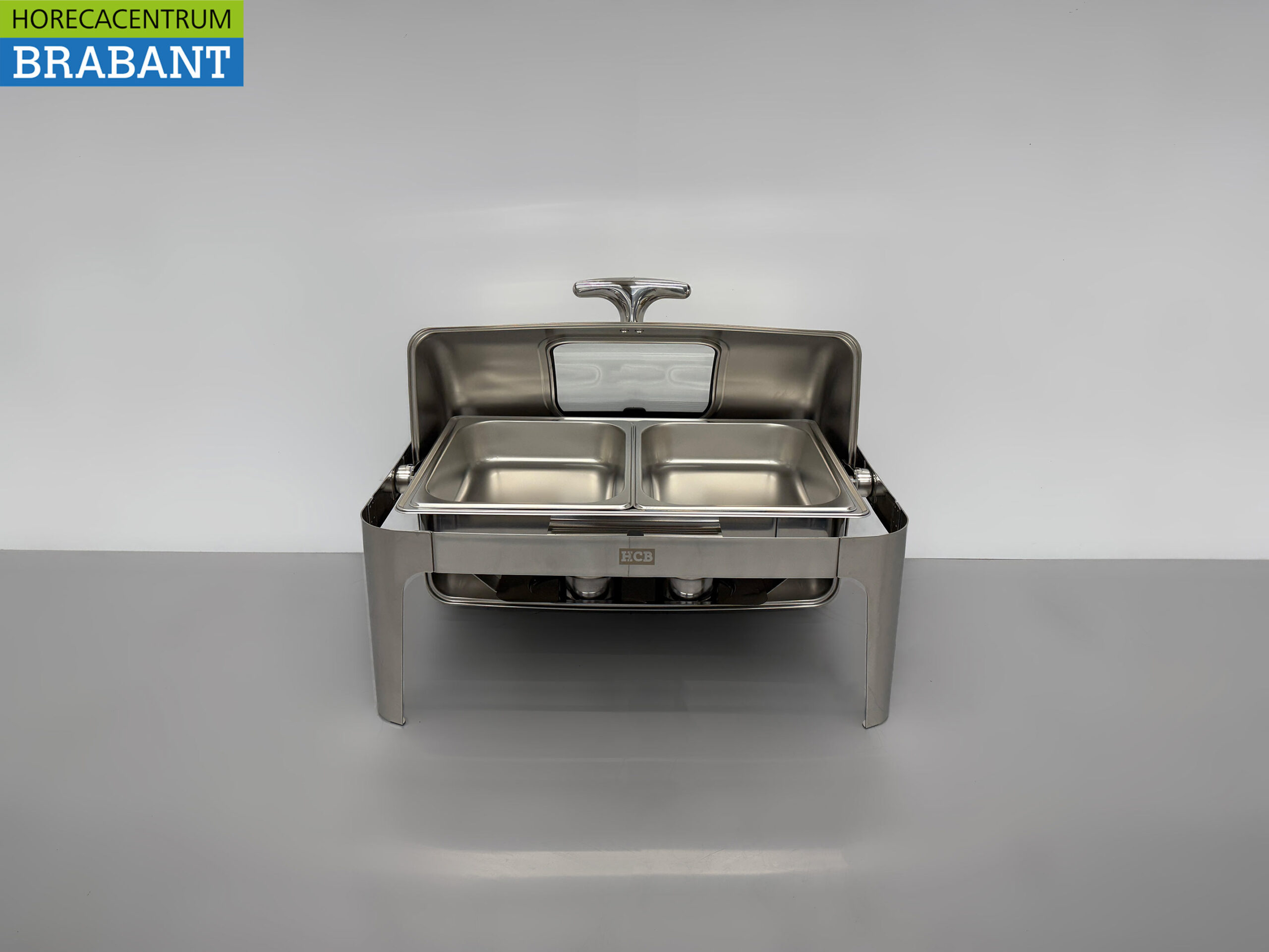Professionele chafing dish voor het warmhouden en presenteren van diverse gerechten. Dit model van HCB is volledig uitgevoerd in hoogwaardig RVS en voorzien van een handig rolltop deksel met kijkglas. Ideaal voor buffetten, catering en horeca.