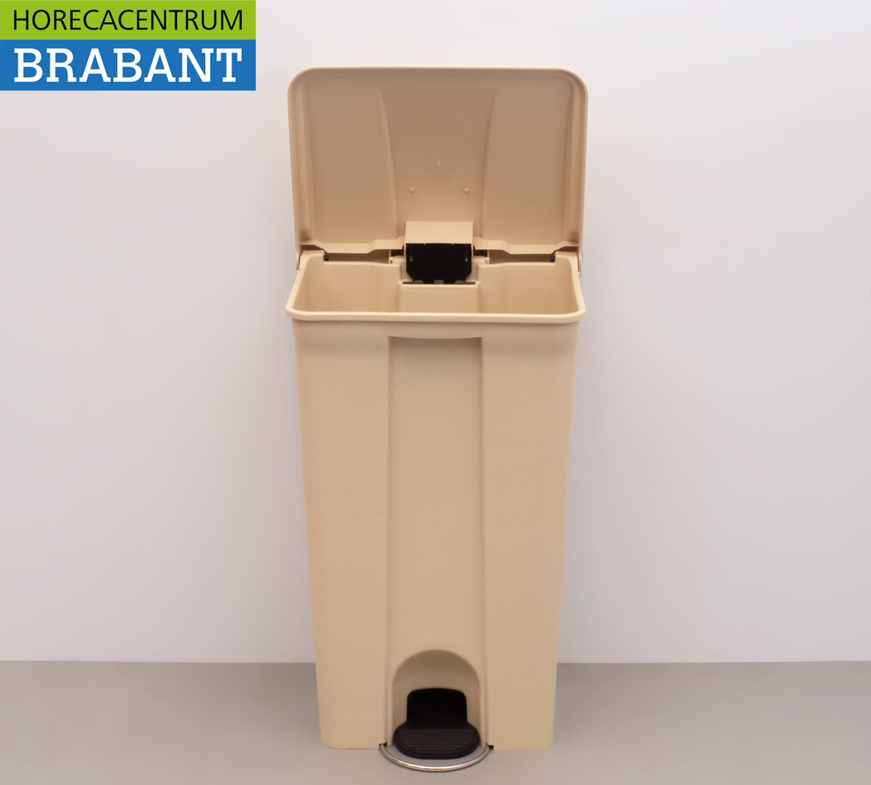 Stevige prullenbak met voetpedaal, ideaal voor professioneel gebruik in horeca, keukens, kantines of werkruimtes. Het voetpedaal zorgt voor hygiënisch openen zonder de handen te gebruiken.