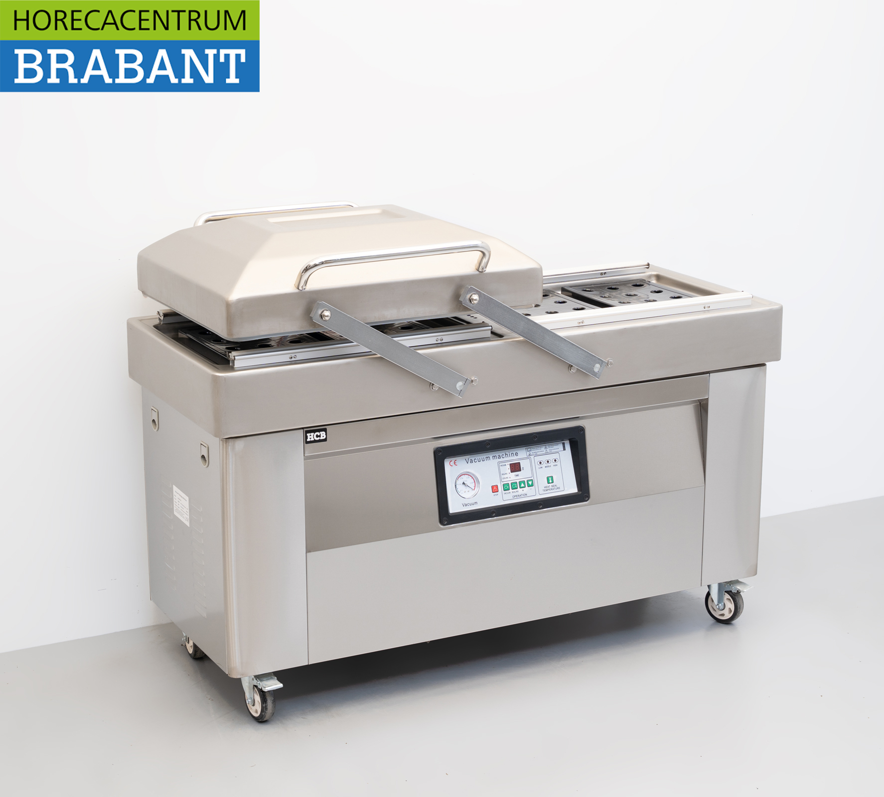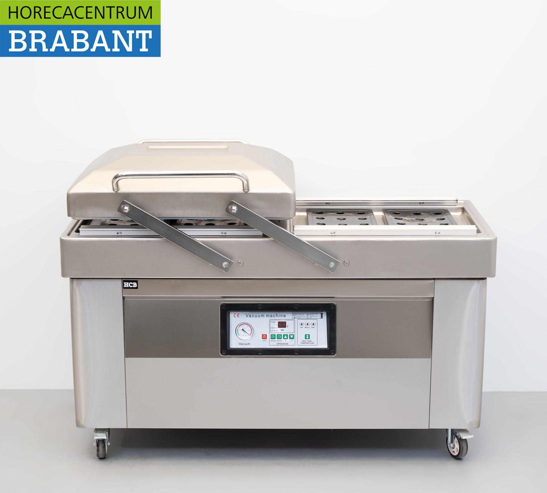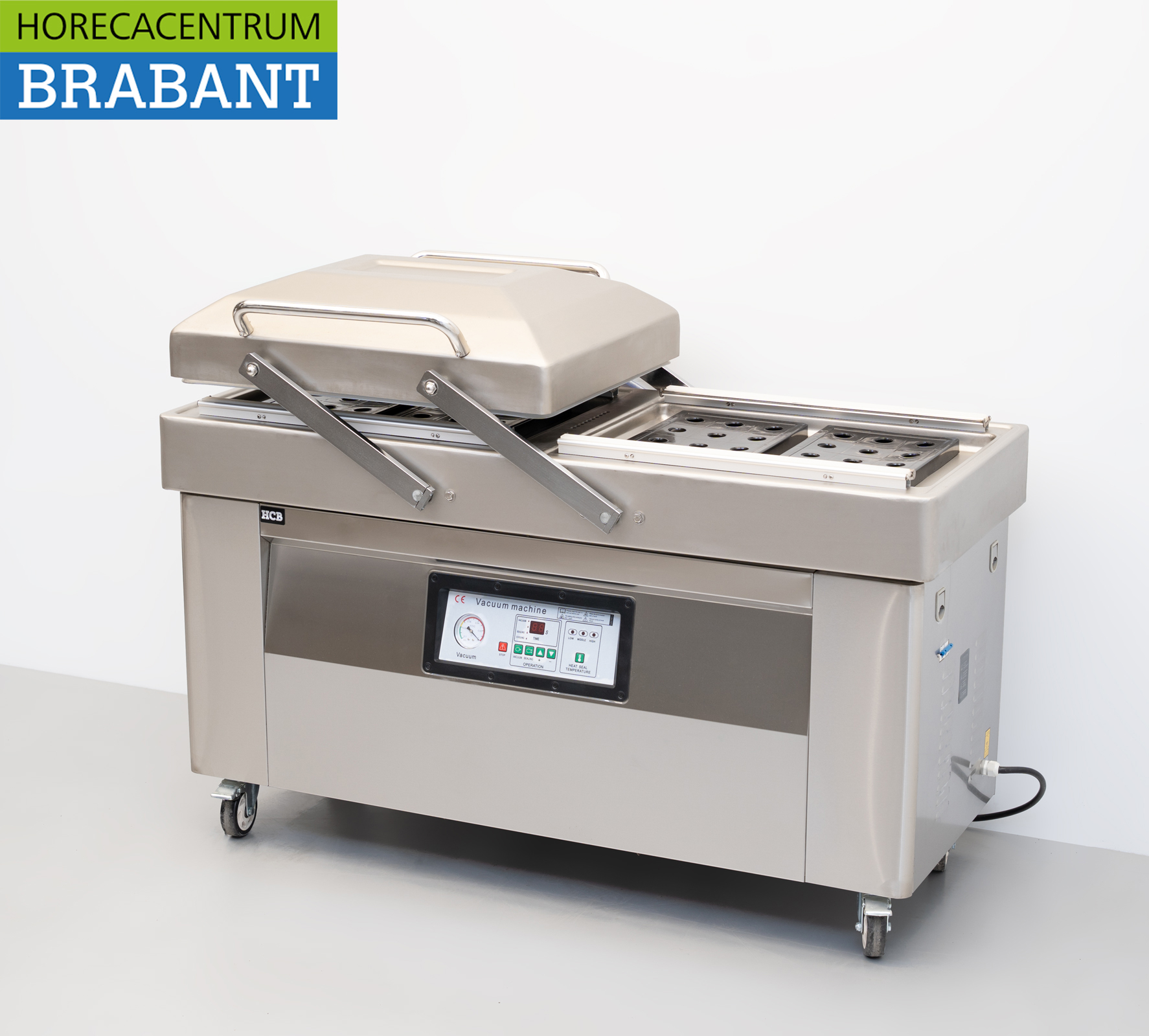 De machine is volledig uitgevoerd in roestvrij staal (RVS) en voorzien van krachtige sealbalken van 60 cm, waardoor grotere verpakkingen eenvoudig en betrouwbaar luchtdicht afgesloten kunnen worden.