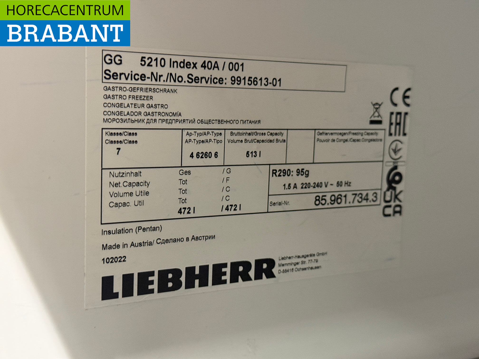 Liebherr Vriezer 513 liter 230V Horeca