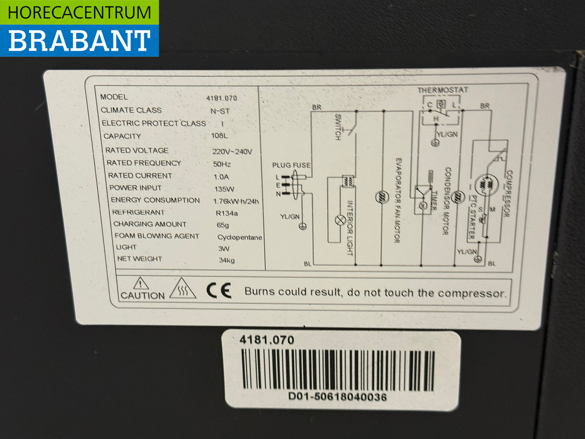 • Koudemiddel: R134a