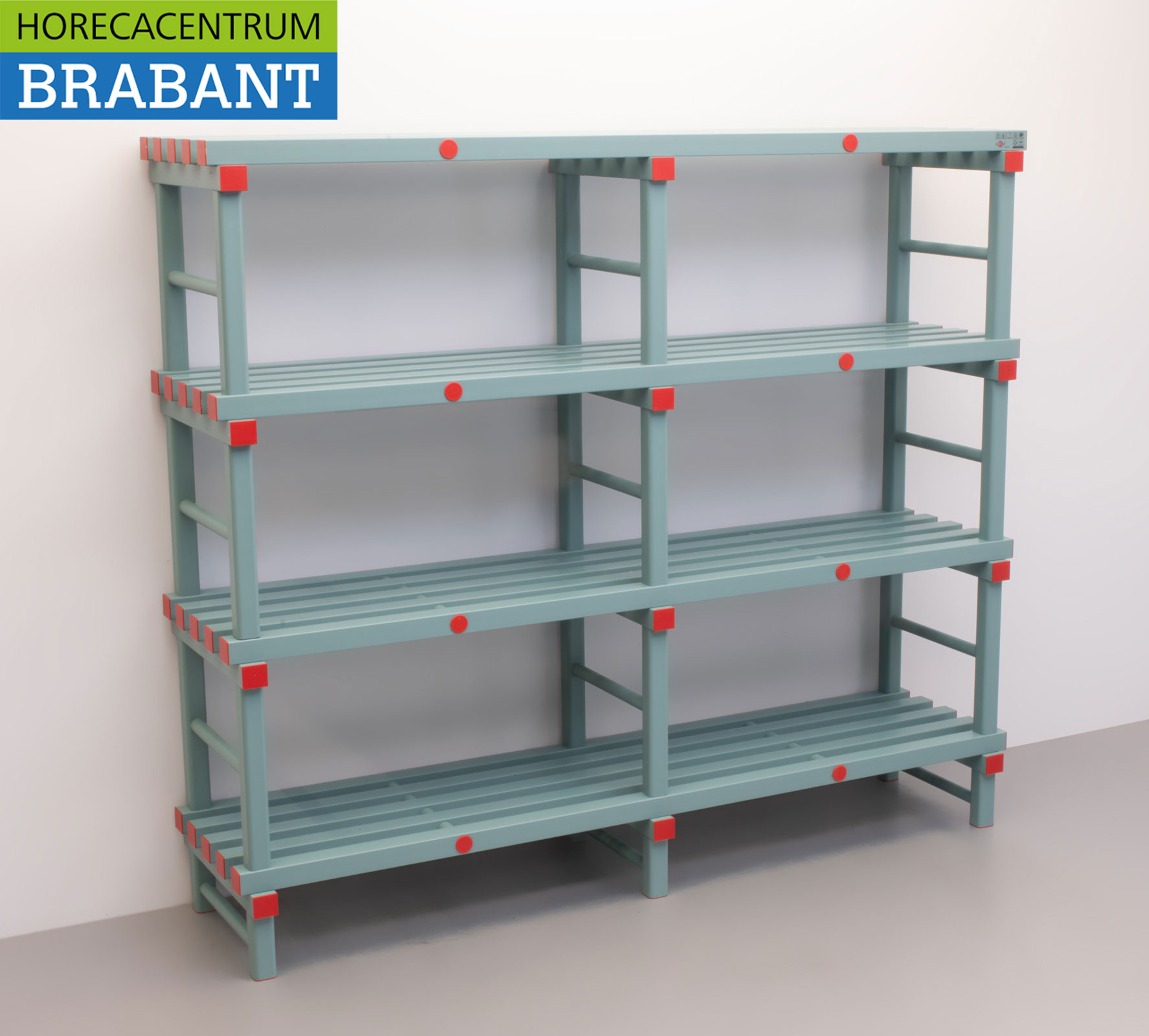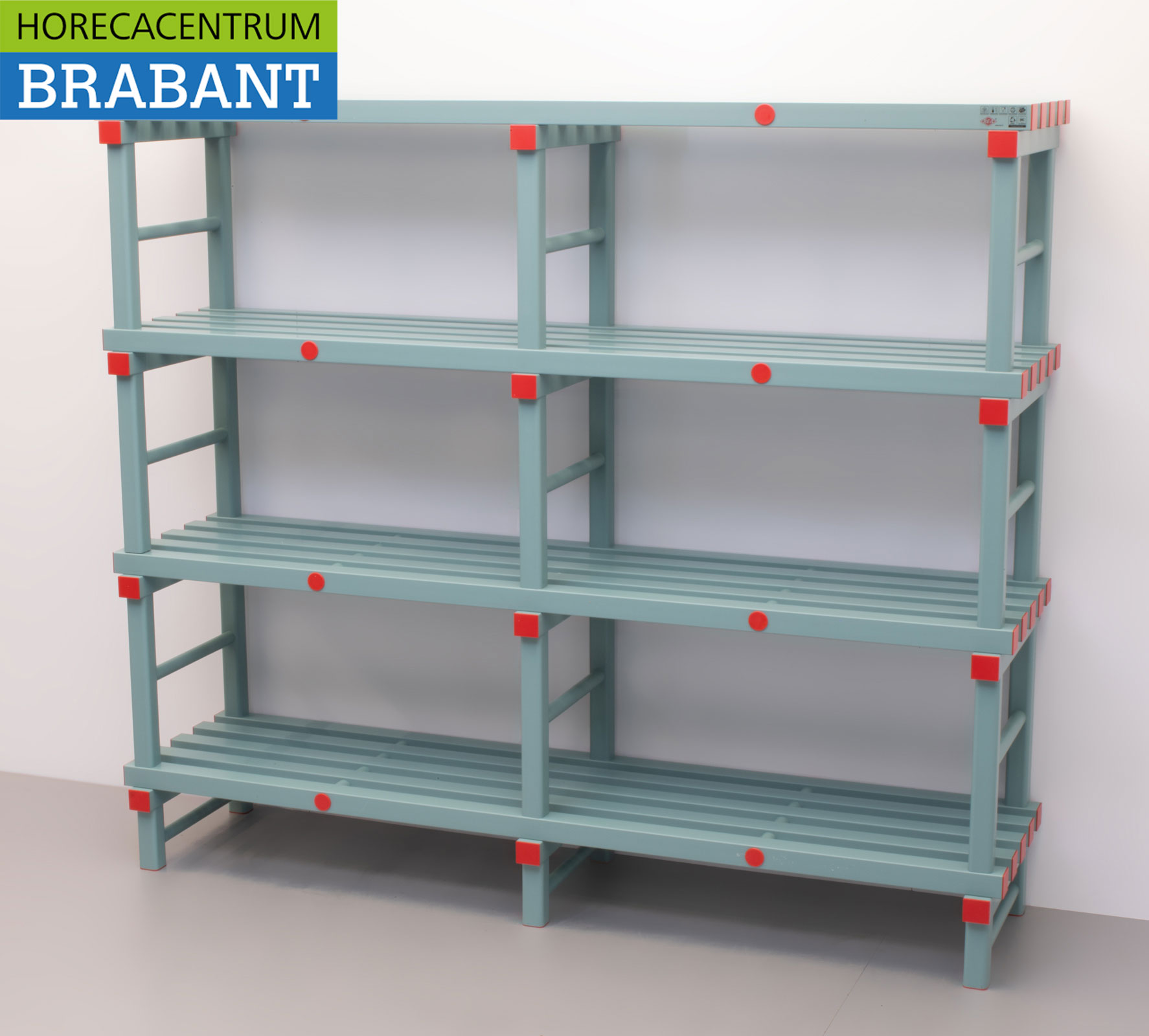 Het systeem is eenvoudig te monteren zonder gereedschap en voldoet aan de geldende HACCP-hygiënenormen. Elk schap heeft een hoog draagvermogen en kan tegen een stootje, wat deze stelling perfect maakt voor zware horeca-toepassingen.