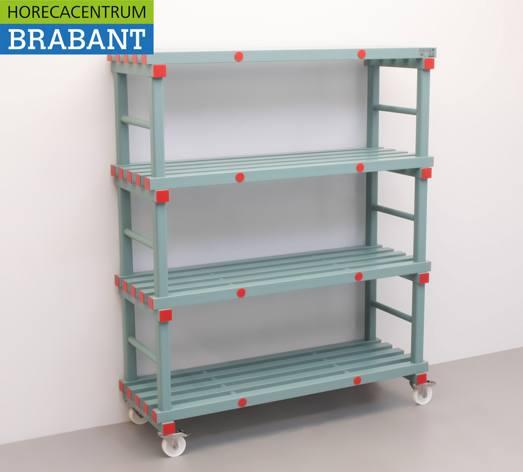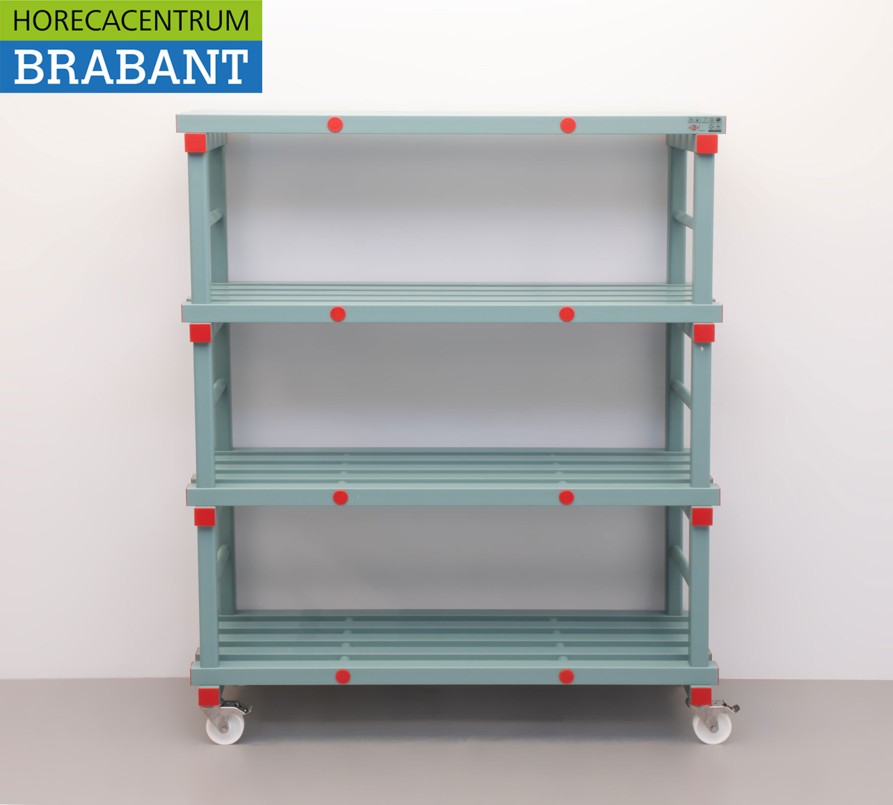 Het systeem is eenvoudig te monteren zonder gereedschap en voldoet aan de geldende HACCP-hygiënenormen. Elk schap heeft een hoog draagvermogen en kan tegen een stootje, wat deze stelling perfect maakt voor zware horeca-toepassingen.
