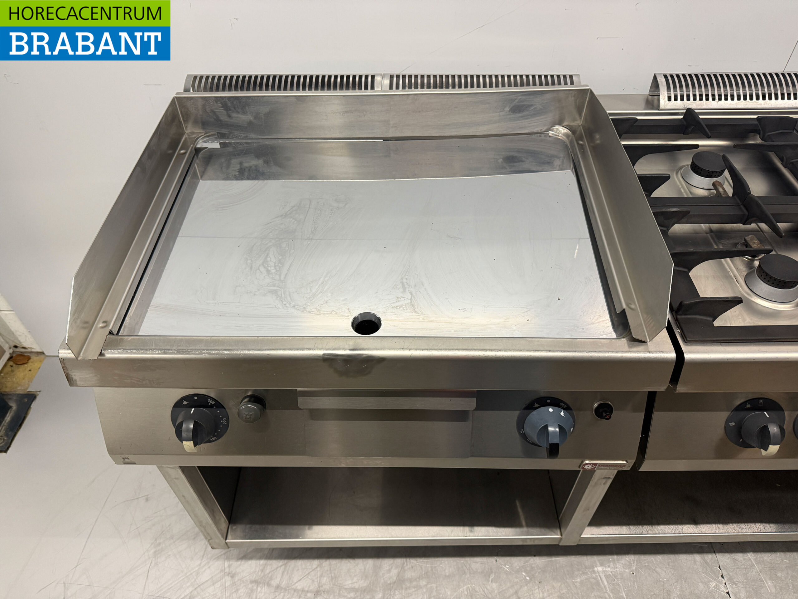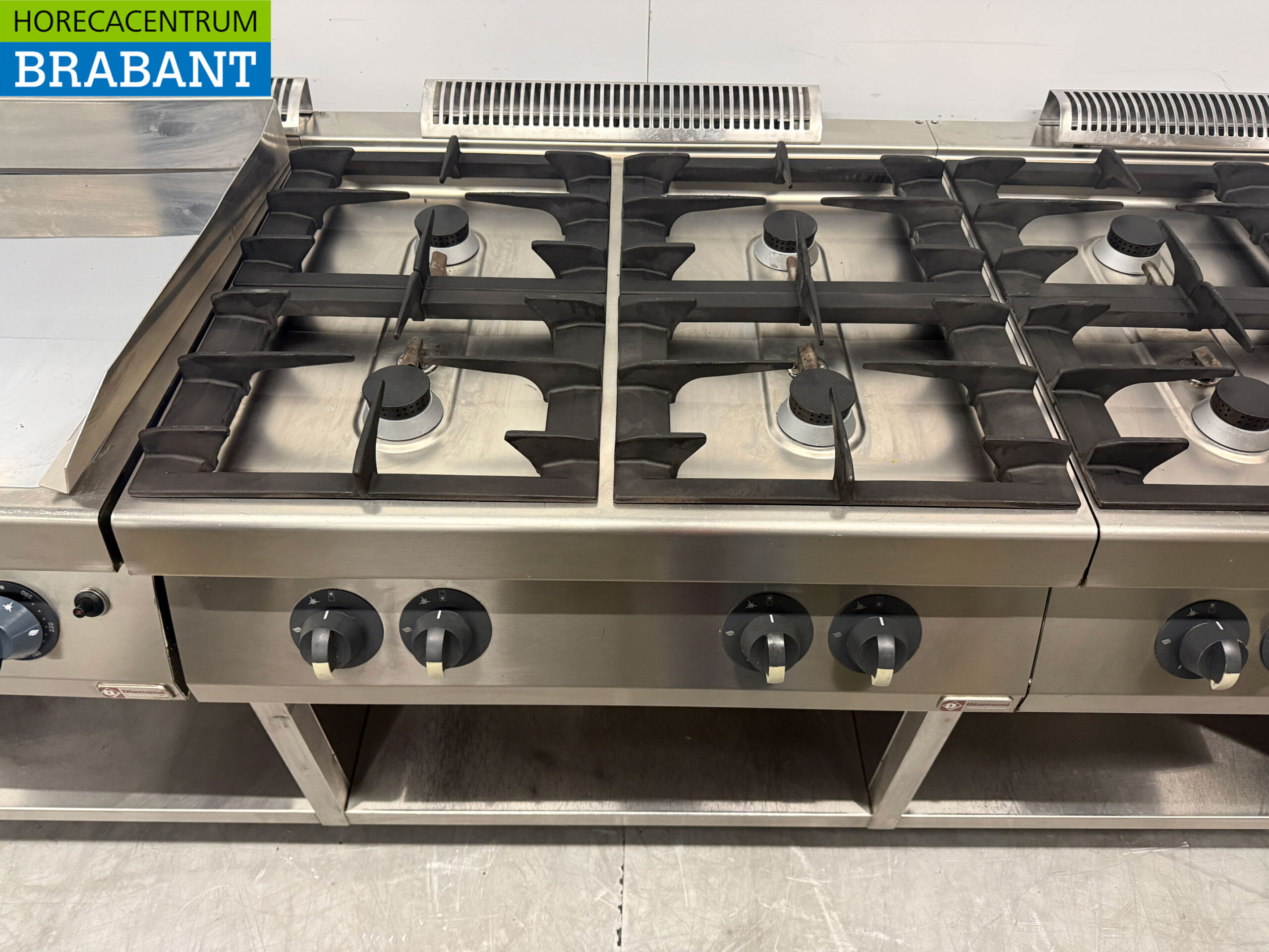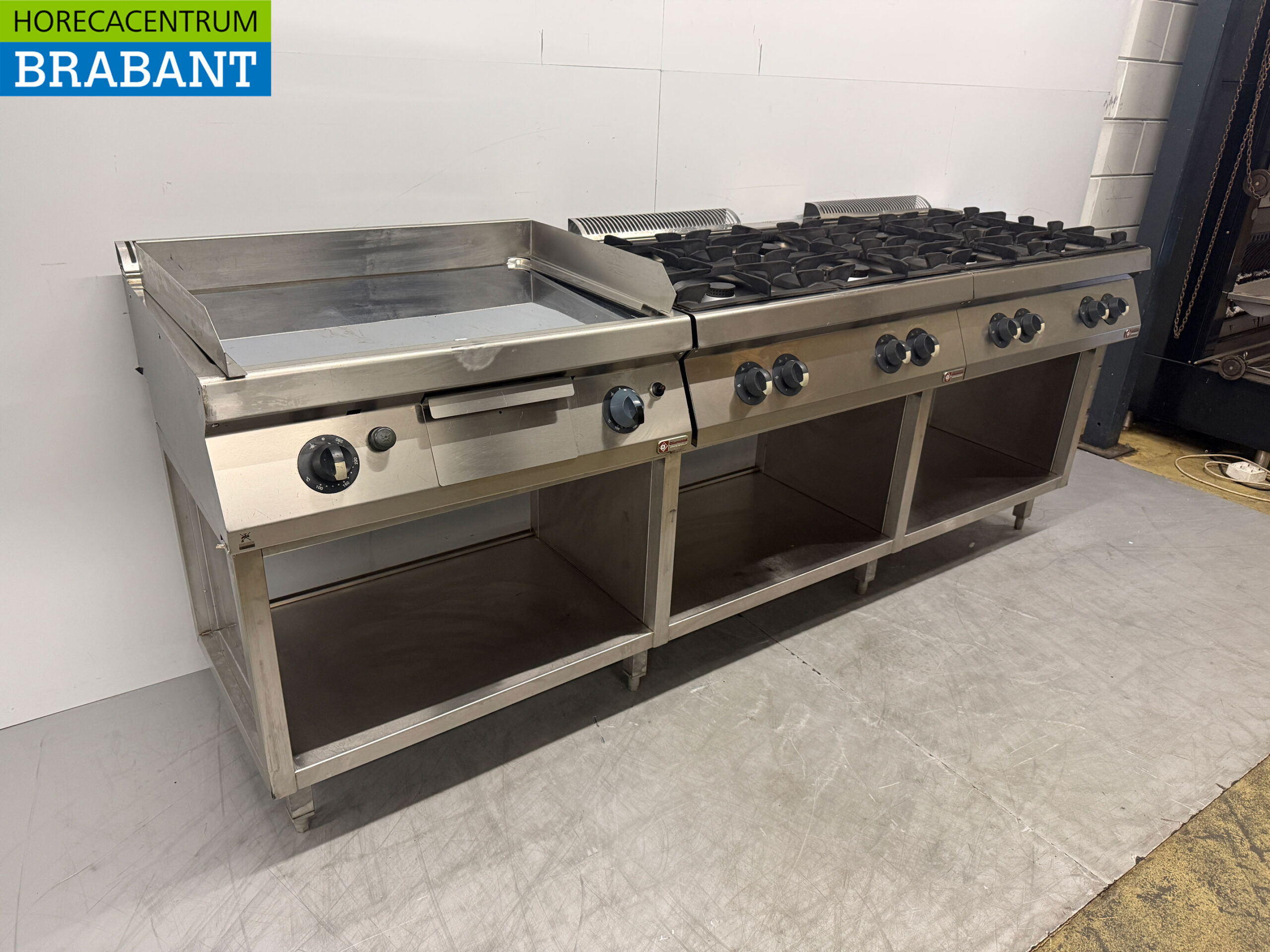 RVS Baklijn met spiegelbakplaat en 2 x 4 pits Fornuis Gasfornuis