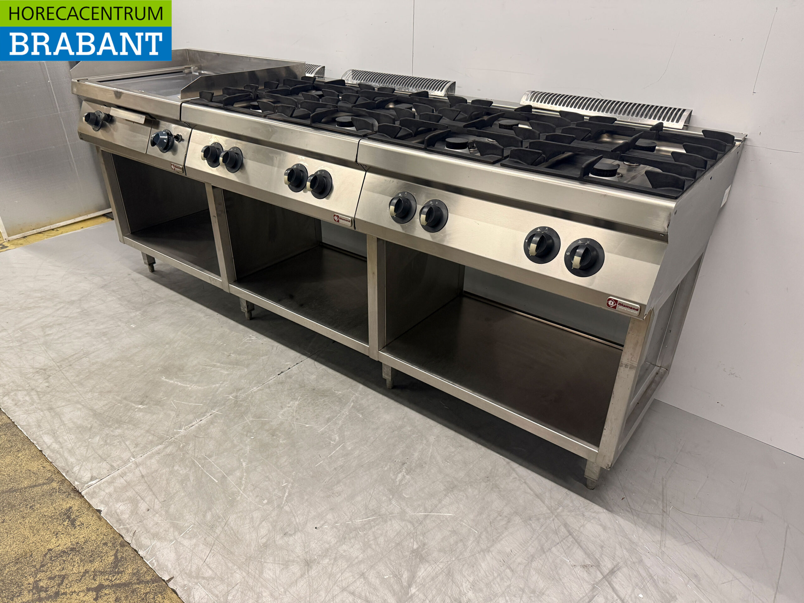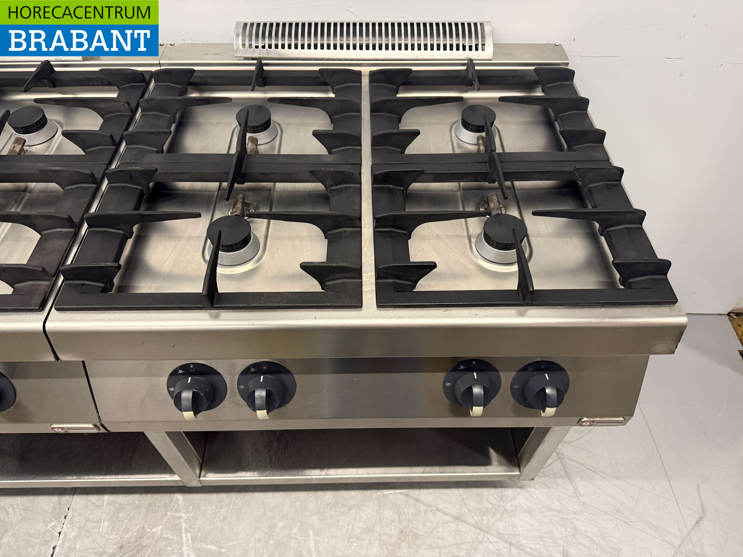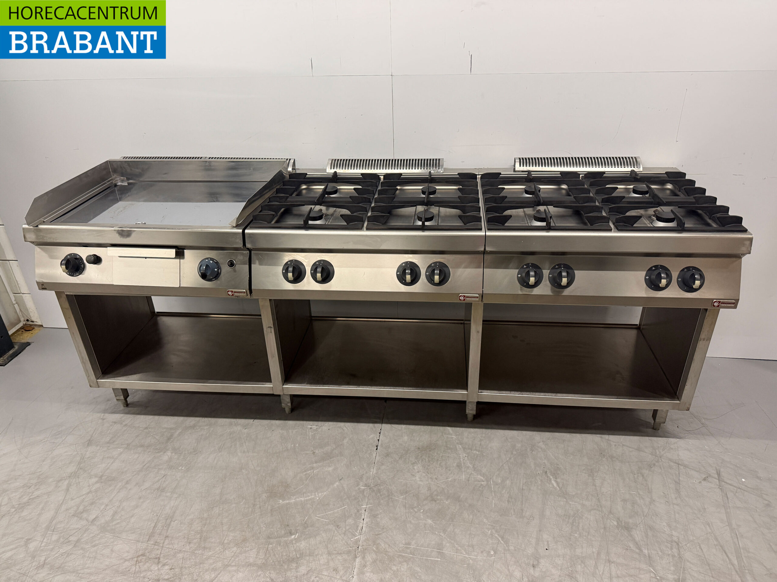 RVS Baklijn met spiegelbakplaat en 2 x 4 pits Fornuis Gasfornuis