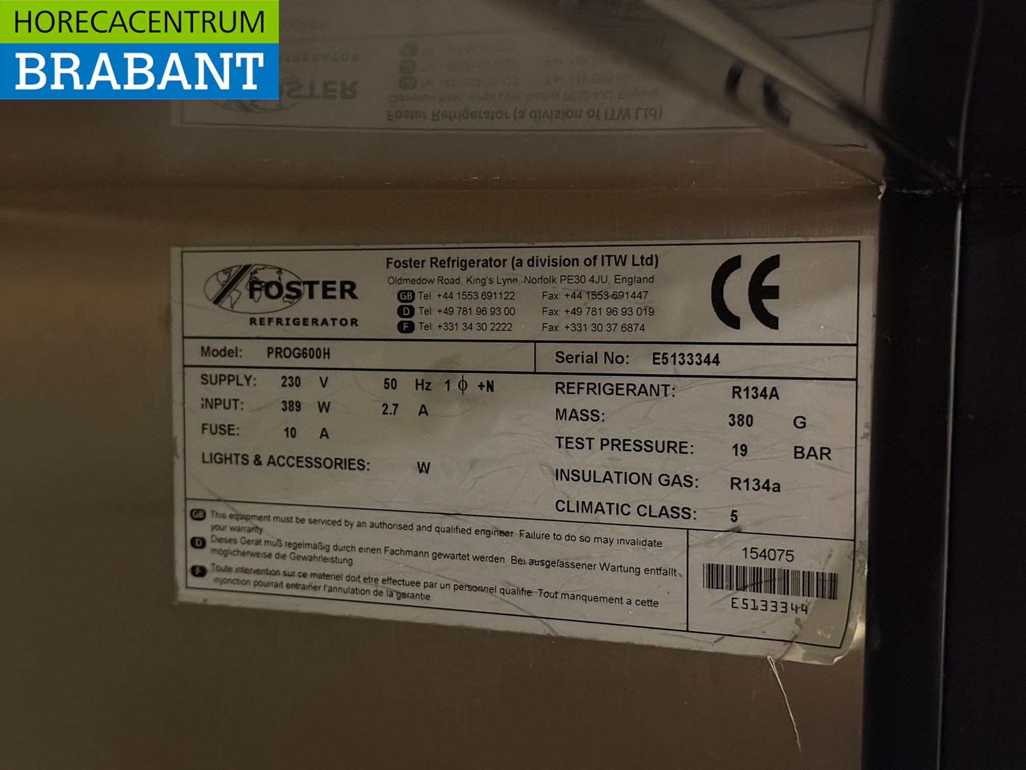 • Koudemiddel: R134a
