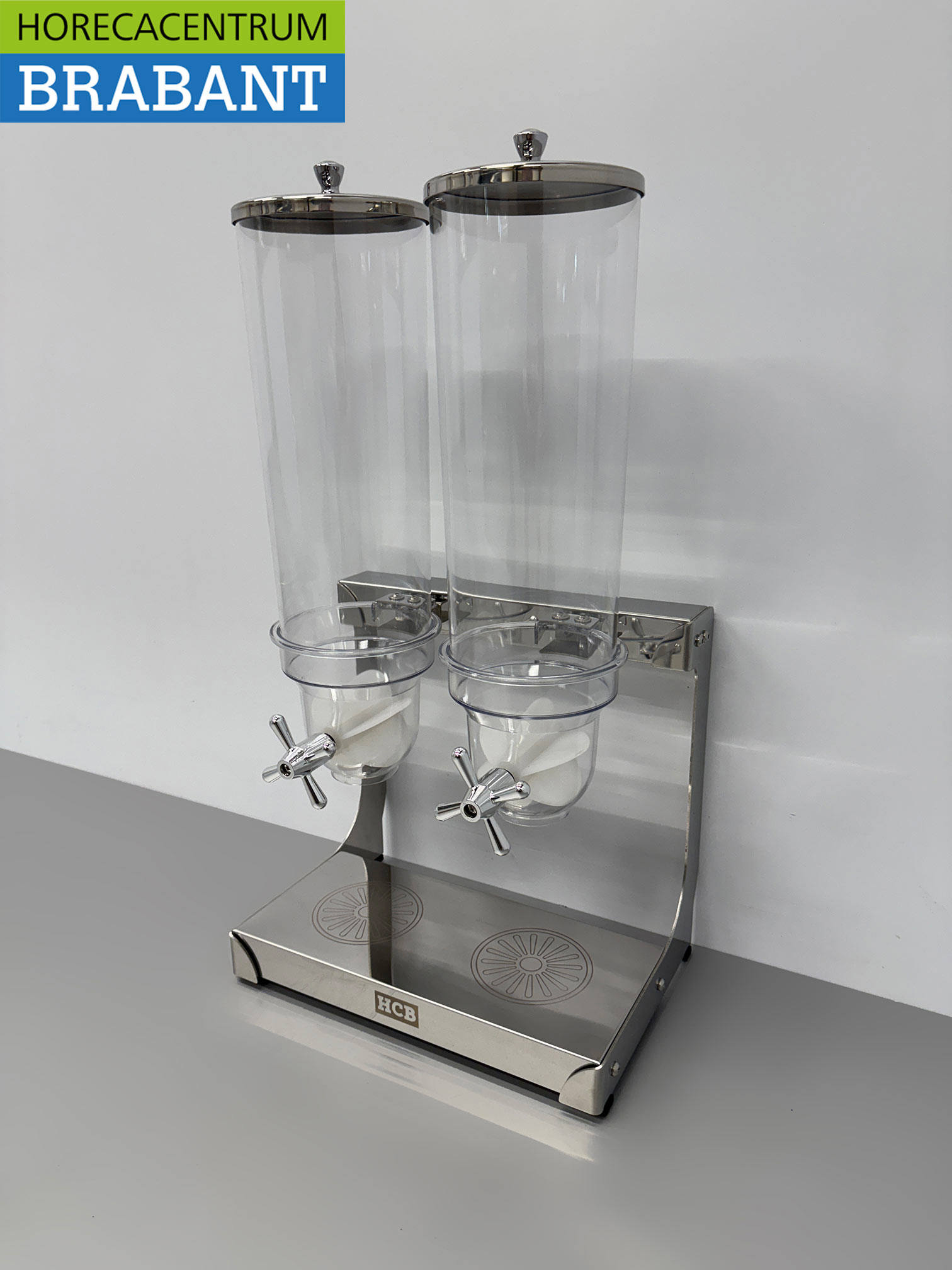 De HCB RVS granendispenser is ideaal voor het hygiënisch en stijlvol presenteren van ontbijtgranen, noten of muesli. Dankzij de krasvaste containers blijft de dispenser ook bij intensief gebruik netjes en duurzaam in uitstraling.