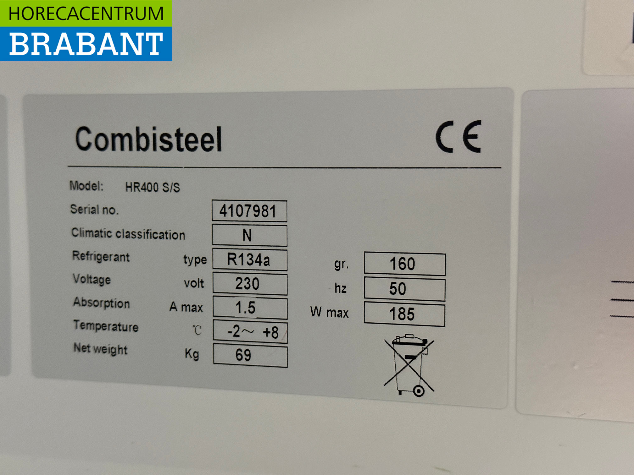 • Koudemiddel: R134a