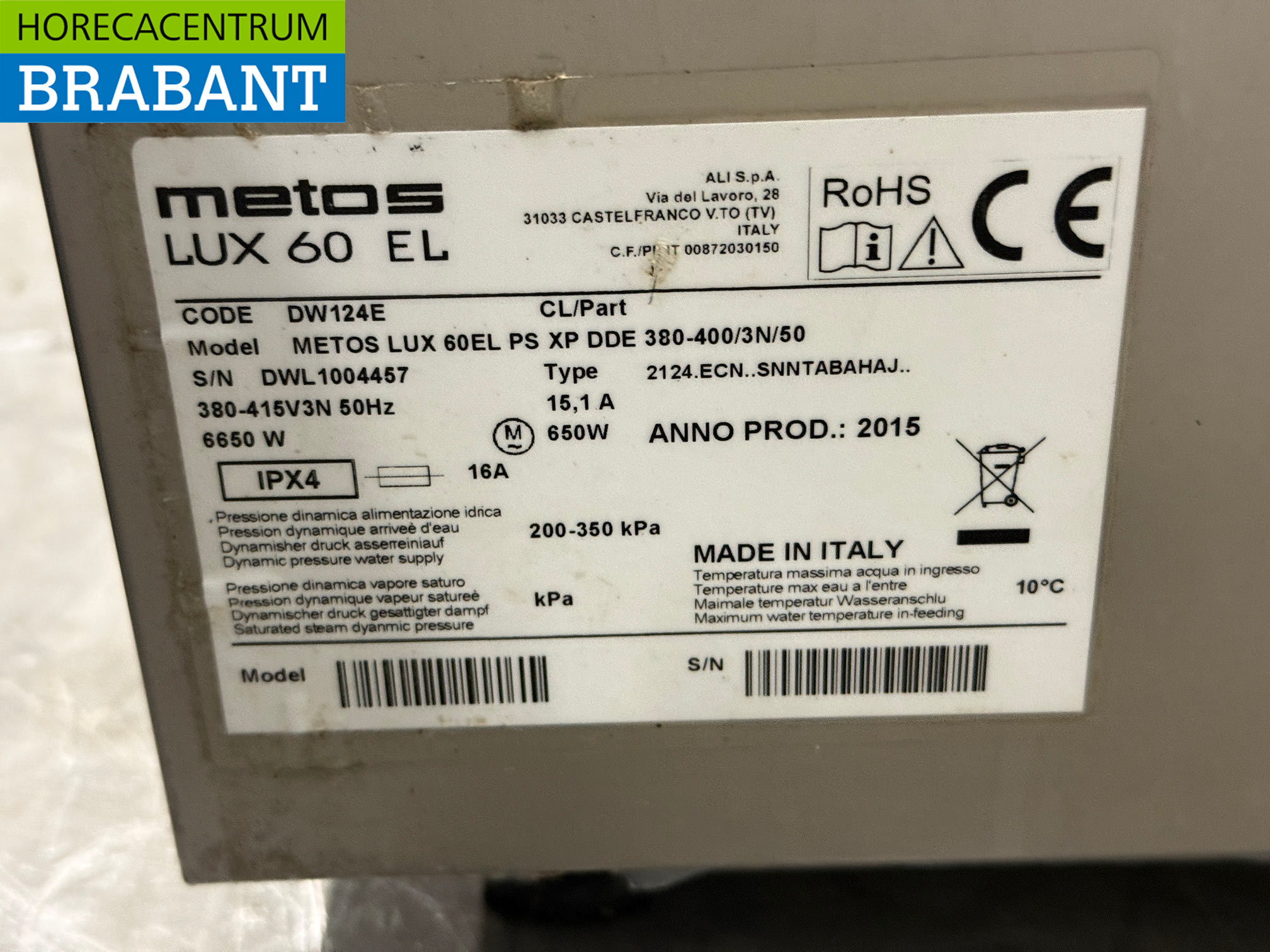RVS Metos Vaatwasser met afvoerpomp 400V Horeca
