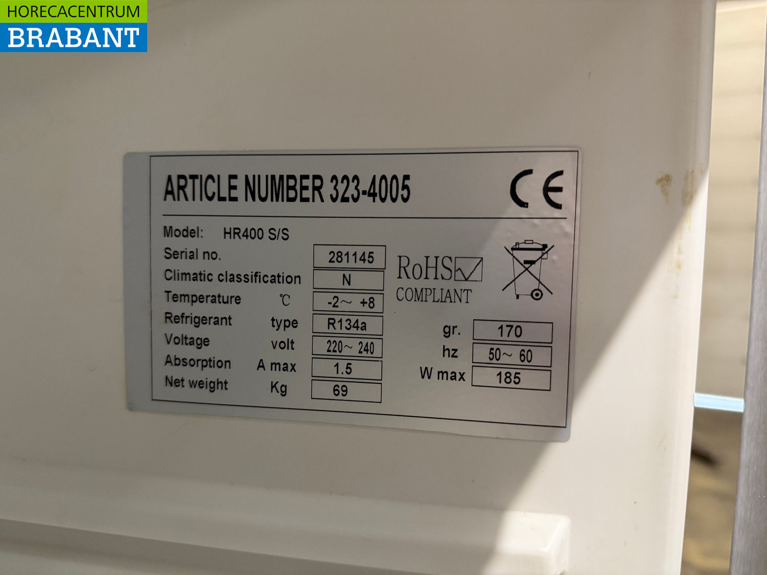 • Koudemiddel: R134a