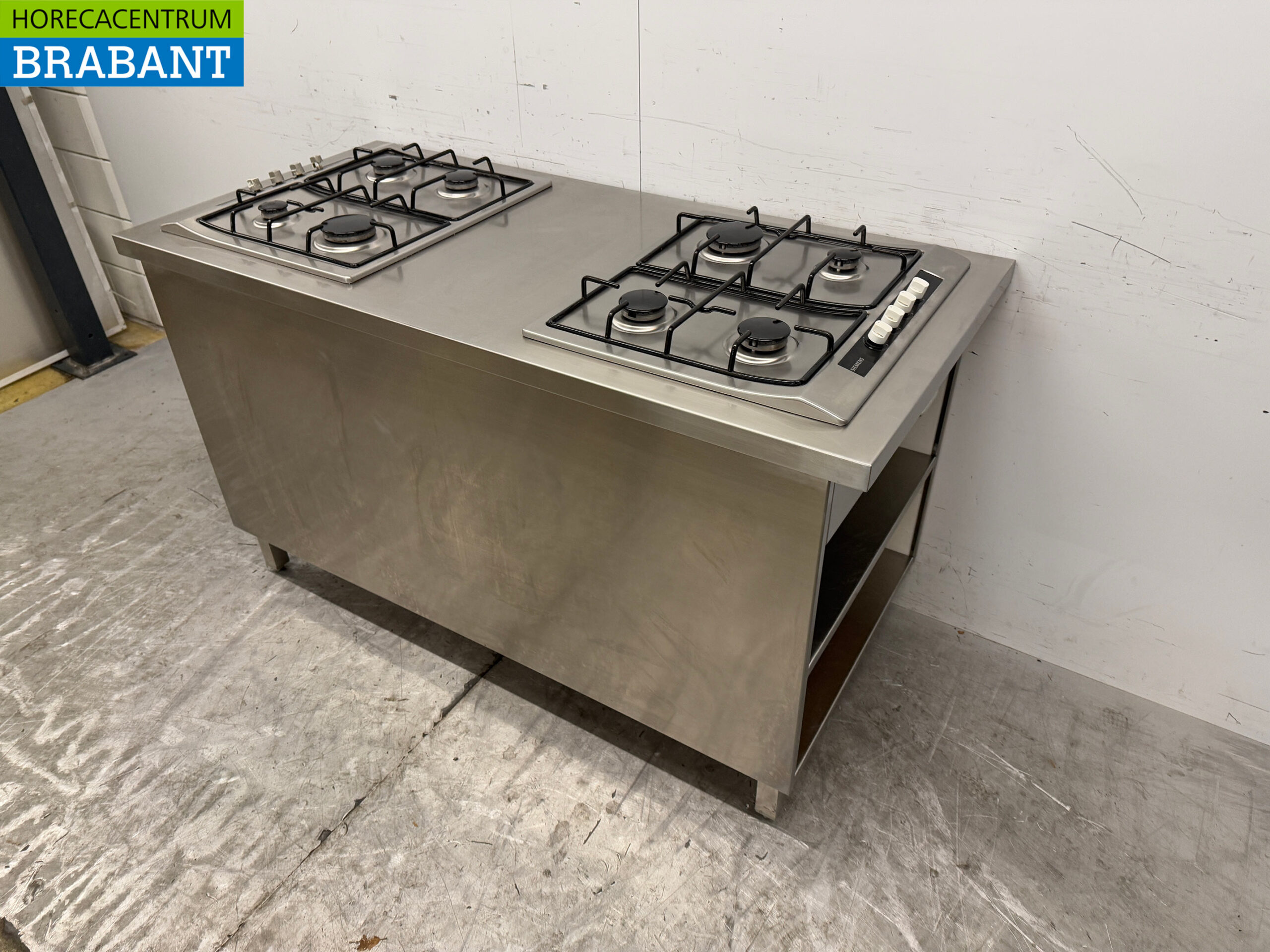 RVS Werkkast met 2 Siemens Inbouw Fornuizen GAS 150 cm Horeca