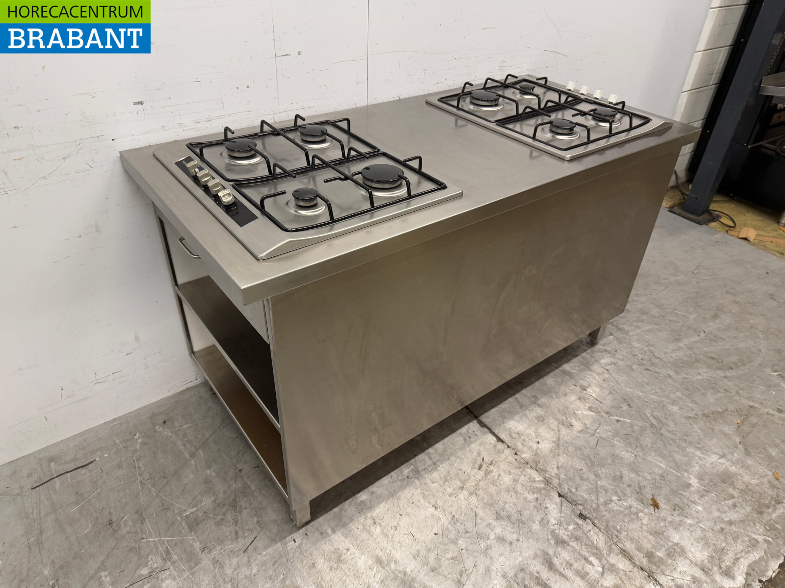 RVS Werkkast Kast Met 2 Inbouwfornuis Gasfornuis