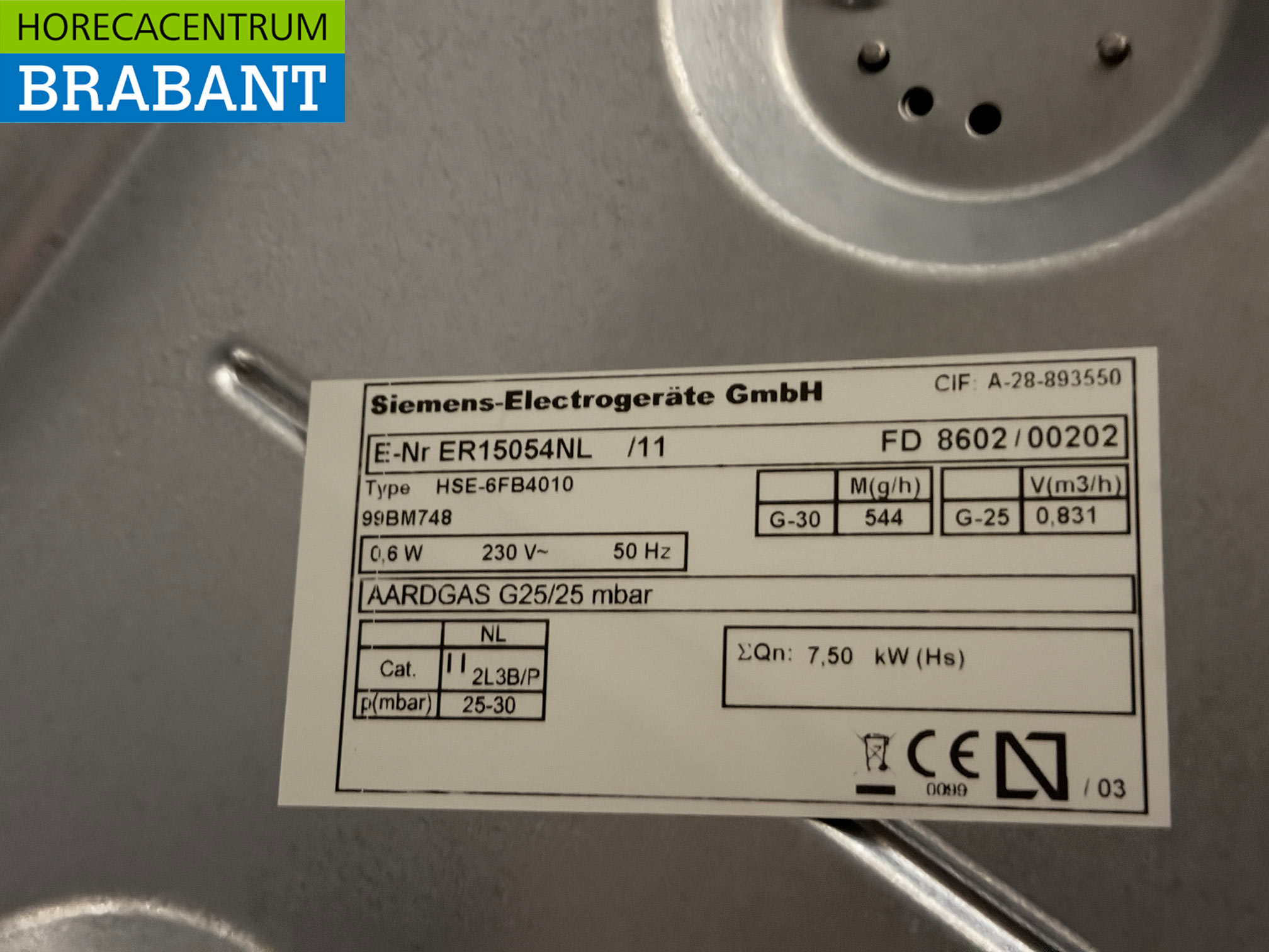 • Aansluiting: Aardgas