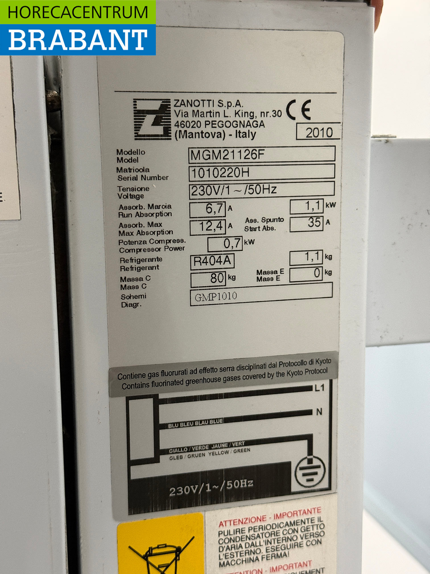 • Koudemiddel: R404a